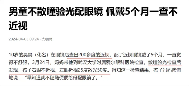 【1】光明网:男童不散瞳验光配眼镜 佩戴5个月一查不近视