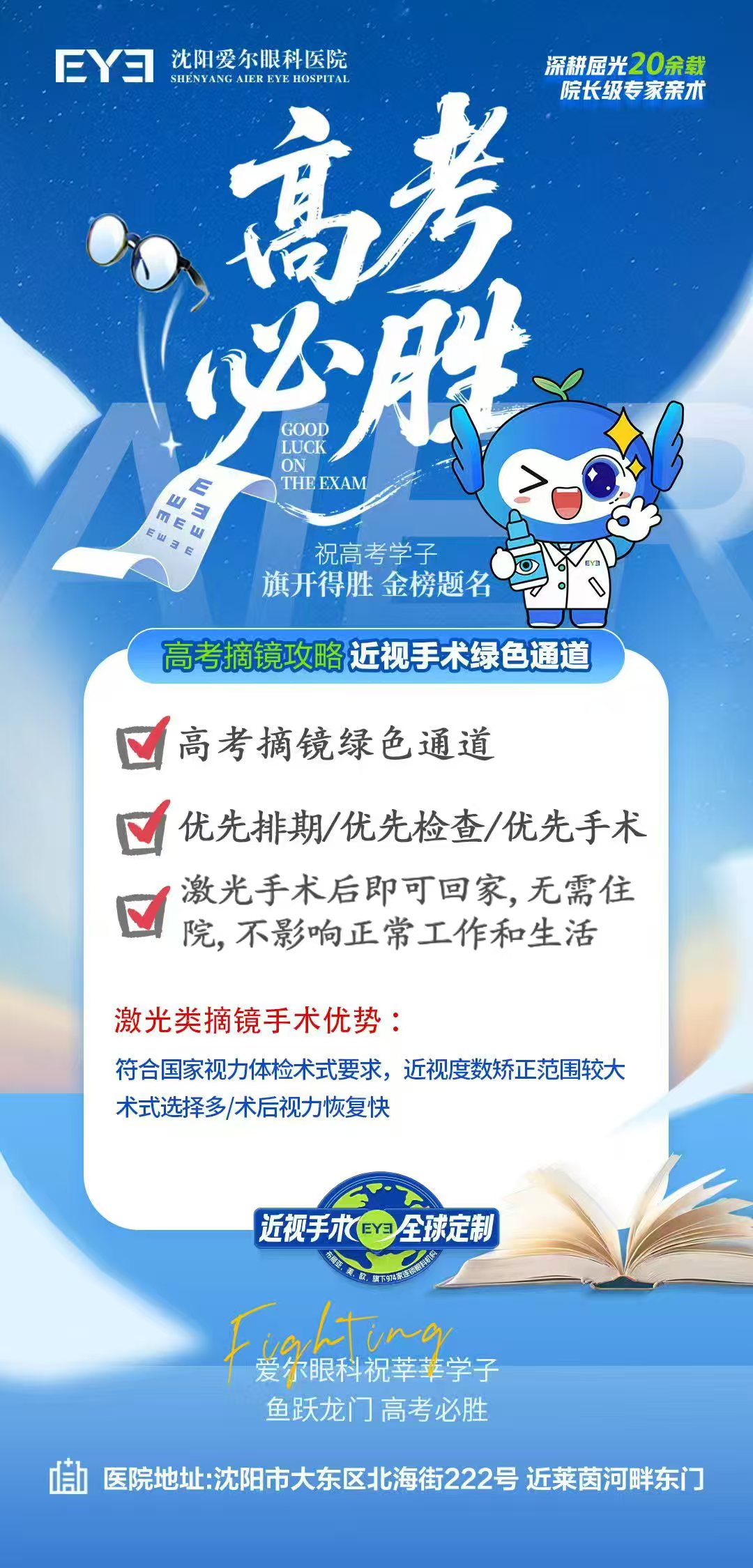 沈阳爱尔眼科医院已开通【高考摘镜绿色通道】 优先排期 、优先检查、优先手术