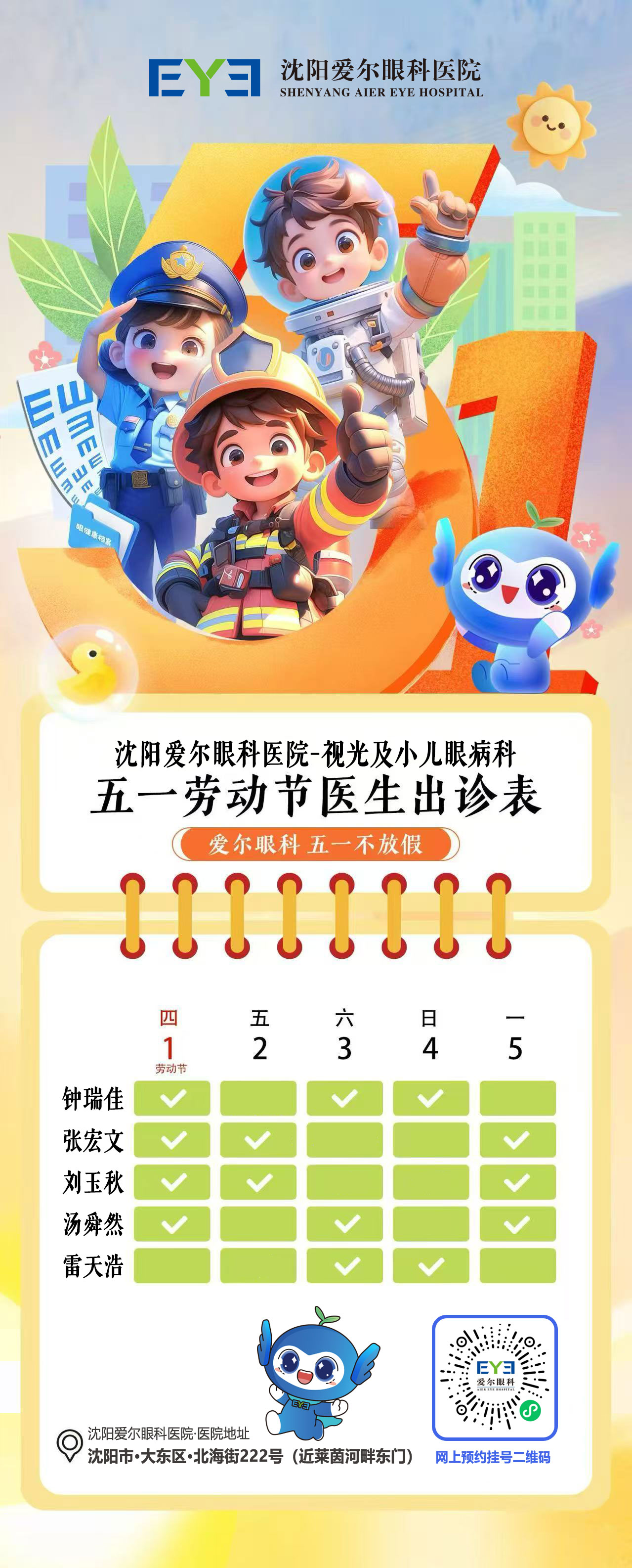 向劳动者致敬!沈阳爱尔眼科医院五一期间正常开诊,健康守护不放假!